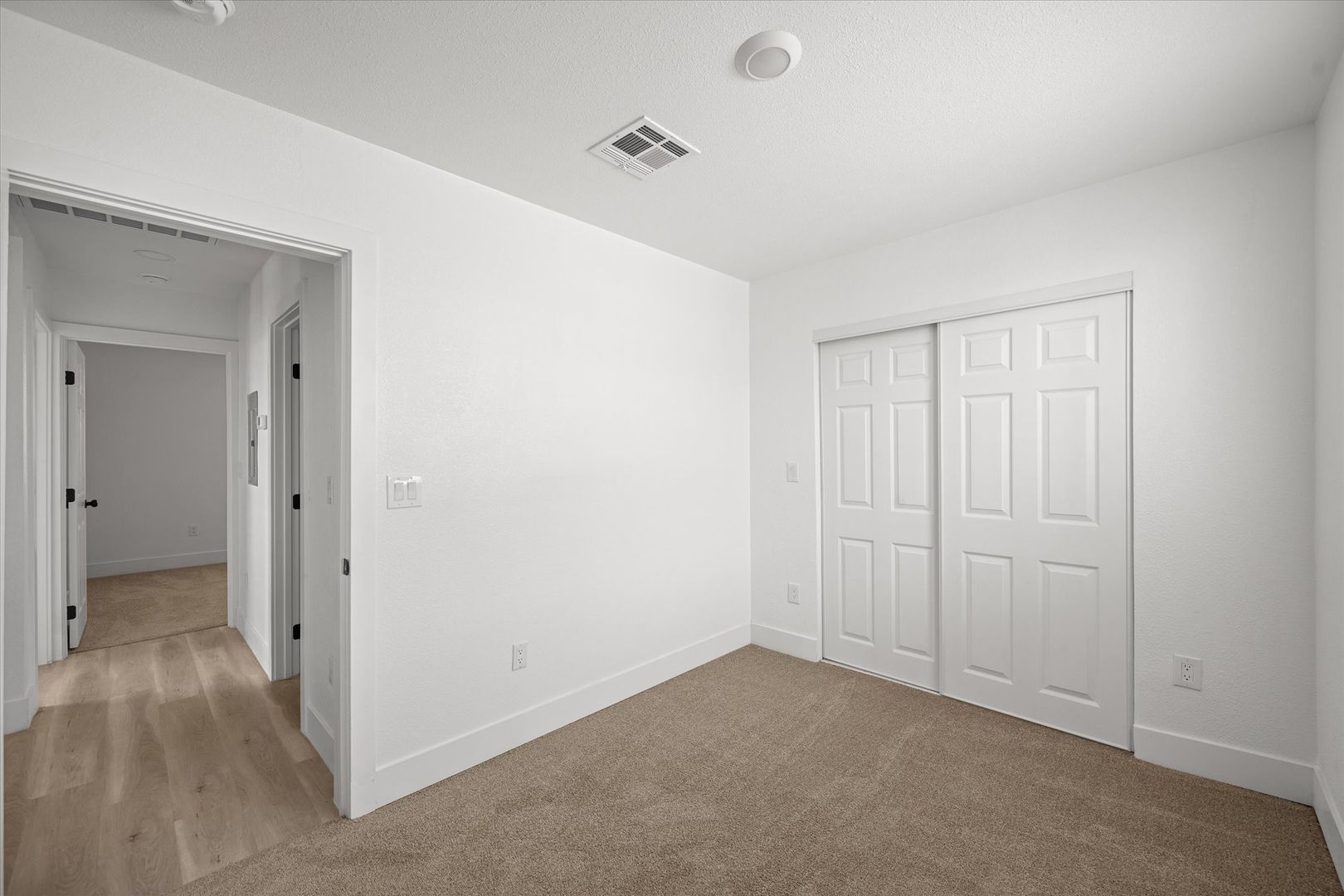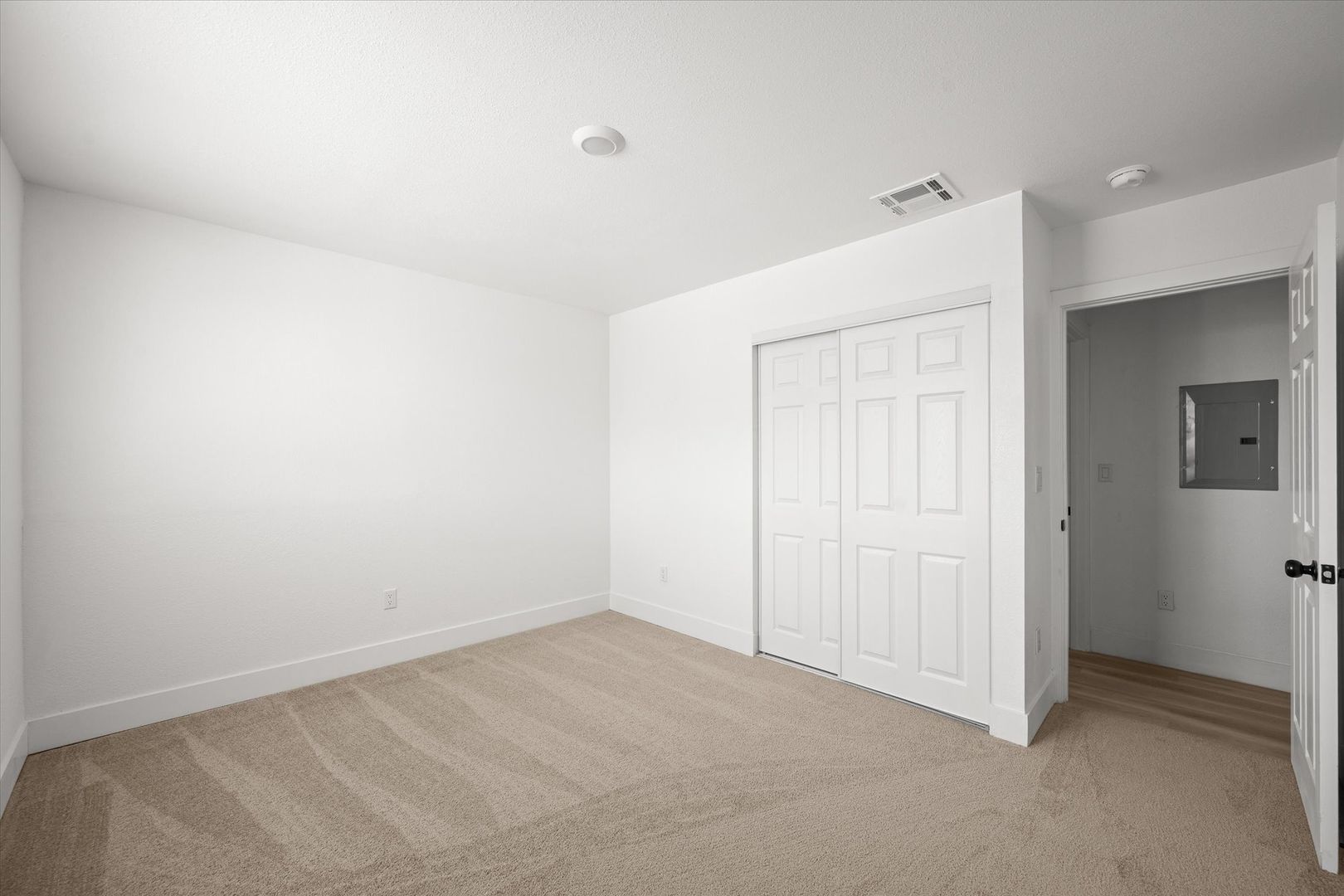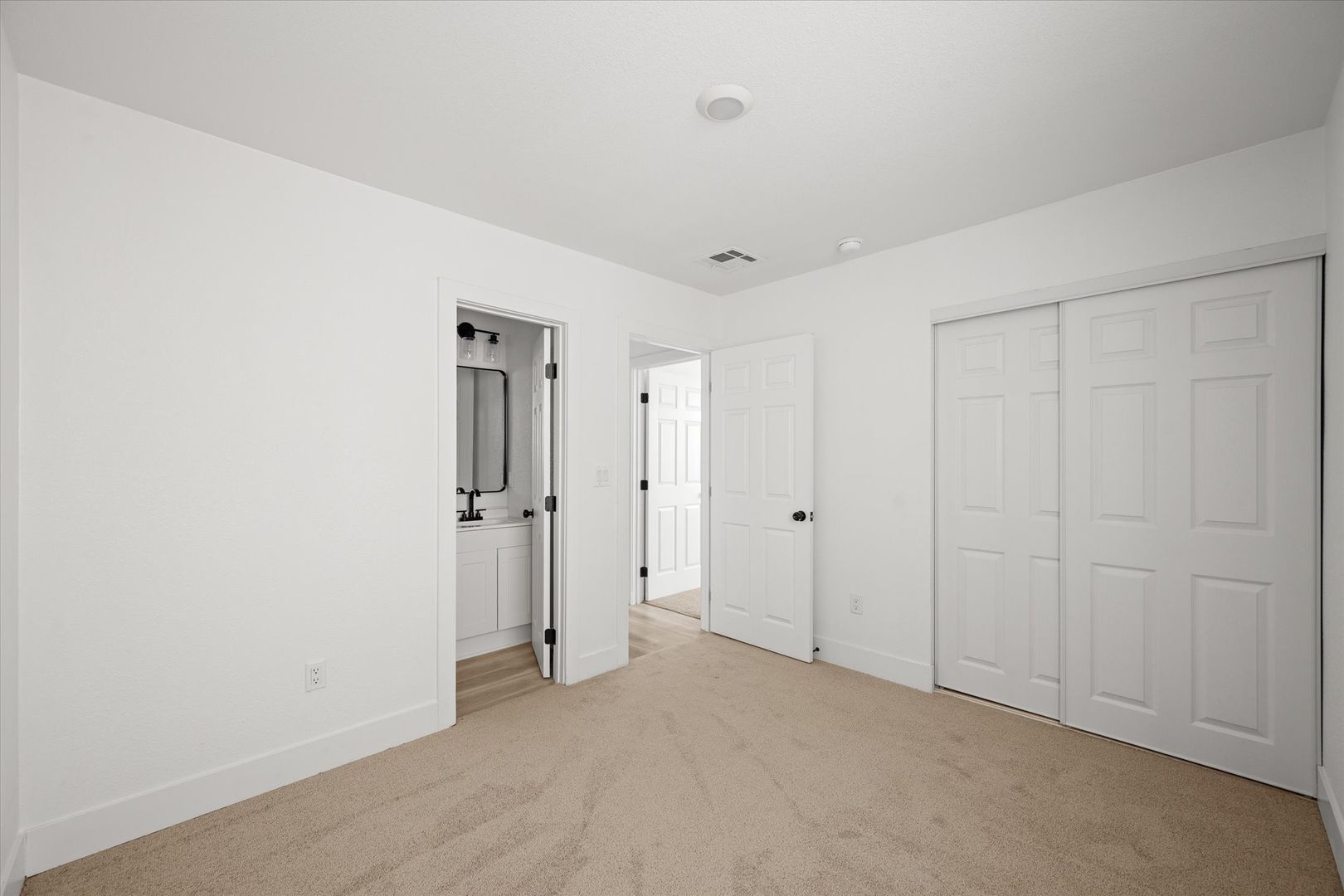 The bathroom has been thoughtfully updated with a sleek vanity and tiled shower, giving it a clean, modern finish.