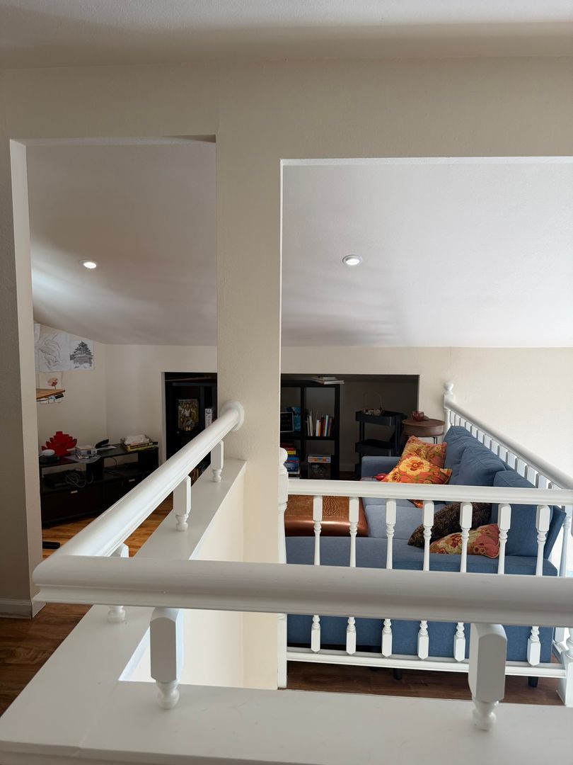 Beautifully maintained 3 bedroom, 3 bath townhome located in the desirable Lakes area of Las Vegas. This spacious two-story home features approximately 1,568 sq ft with an open and airy layout, soaring ceilings, and abundant natural light. The kitchen offers ample cabinet space, breakfast bar seating, and overlooks the dining and living areas, creating an ideal space for everyday living and entertaining. A convenient bedroom and full bath are located downstairs. Upstairs you will find a loft/flex space, additional bedrooms, and laundry area. The primary suite includes a private balcony and remodeled bath. Wood-style flooring throughout and updated bathrooms add a modern touch. Community amenities include a pool and landscaped grounds. Conveniently located near shopping, dining, and major roadways.