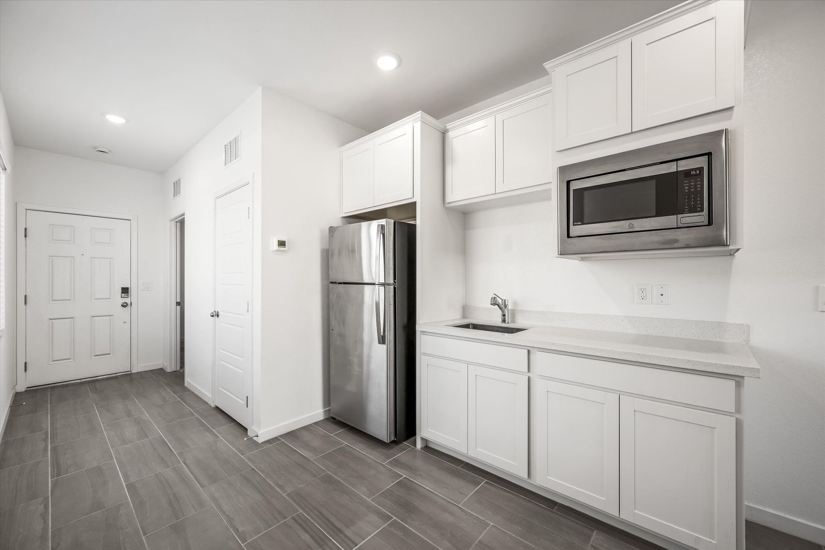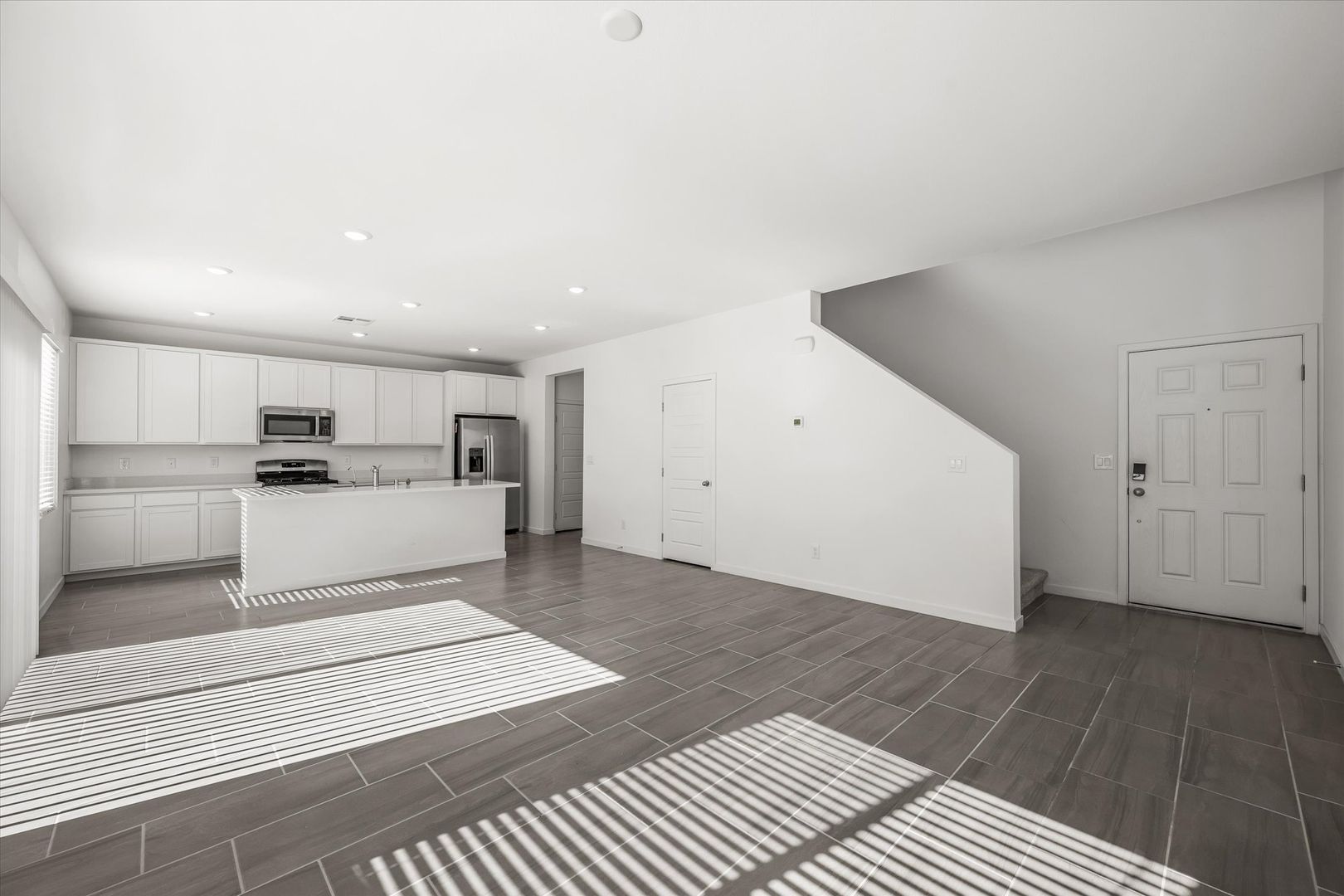 Welcome to this stunning modern, open-concept home featuring active solar panels to help keep energy costs low. A rare private casita with its own entrance offers incredible flexibility—complete with a living area, bedroom, bathroom, in-unit laundry, sink, and microwave—ideal for guests, multigenerational living, or a home office setup.